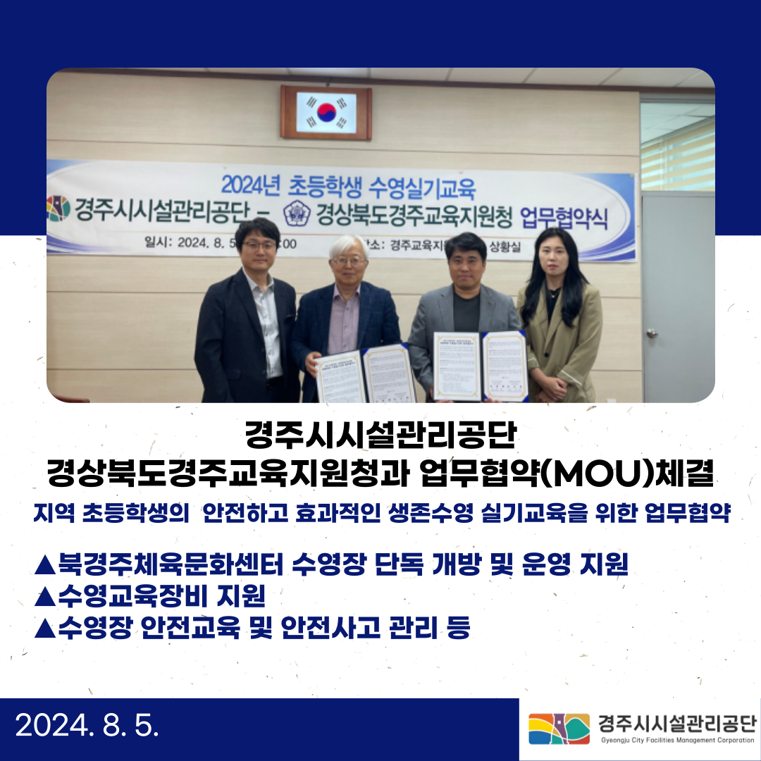 경주시시설관리공단 경상북도경주교육지원청과 업무협약(MOU)체결 (어린이생존수영관련)