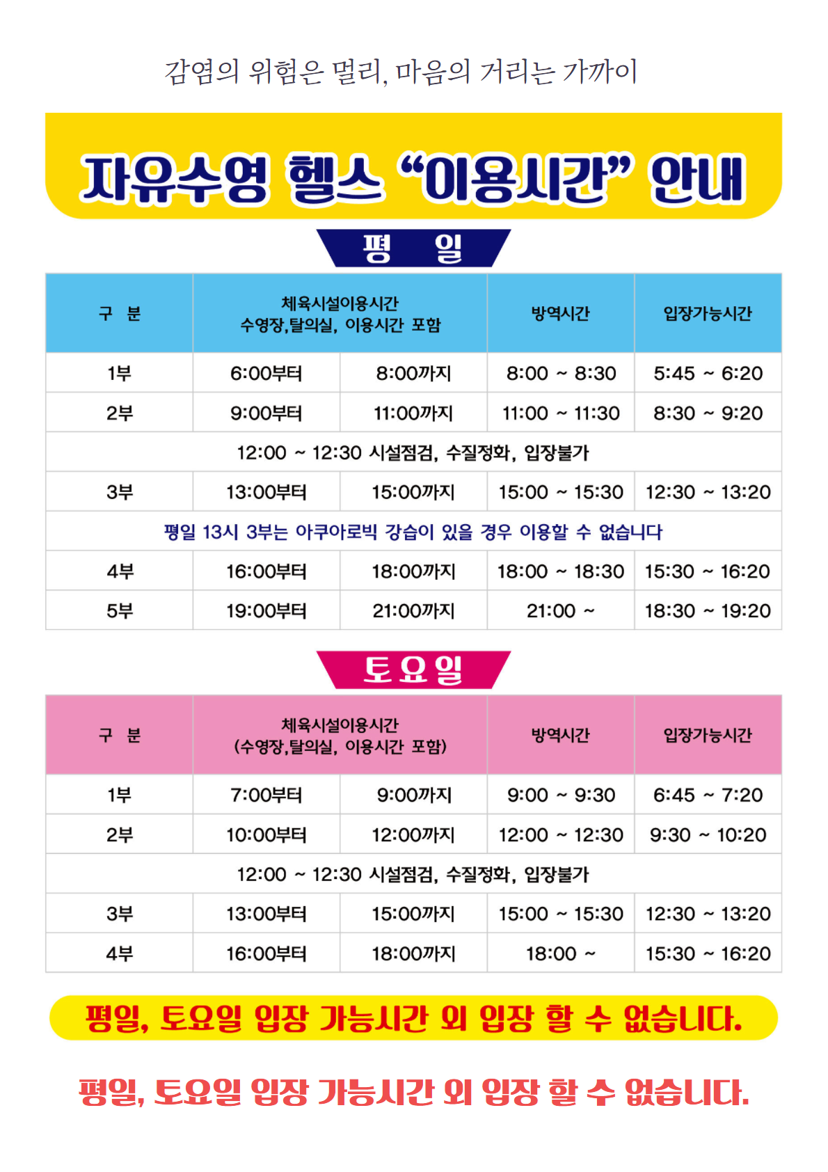 4월 11일 재개장, 이용안내(12월 정기회원 강습, 5월 2일 개강)