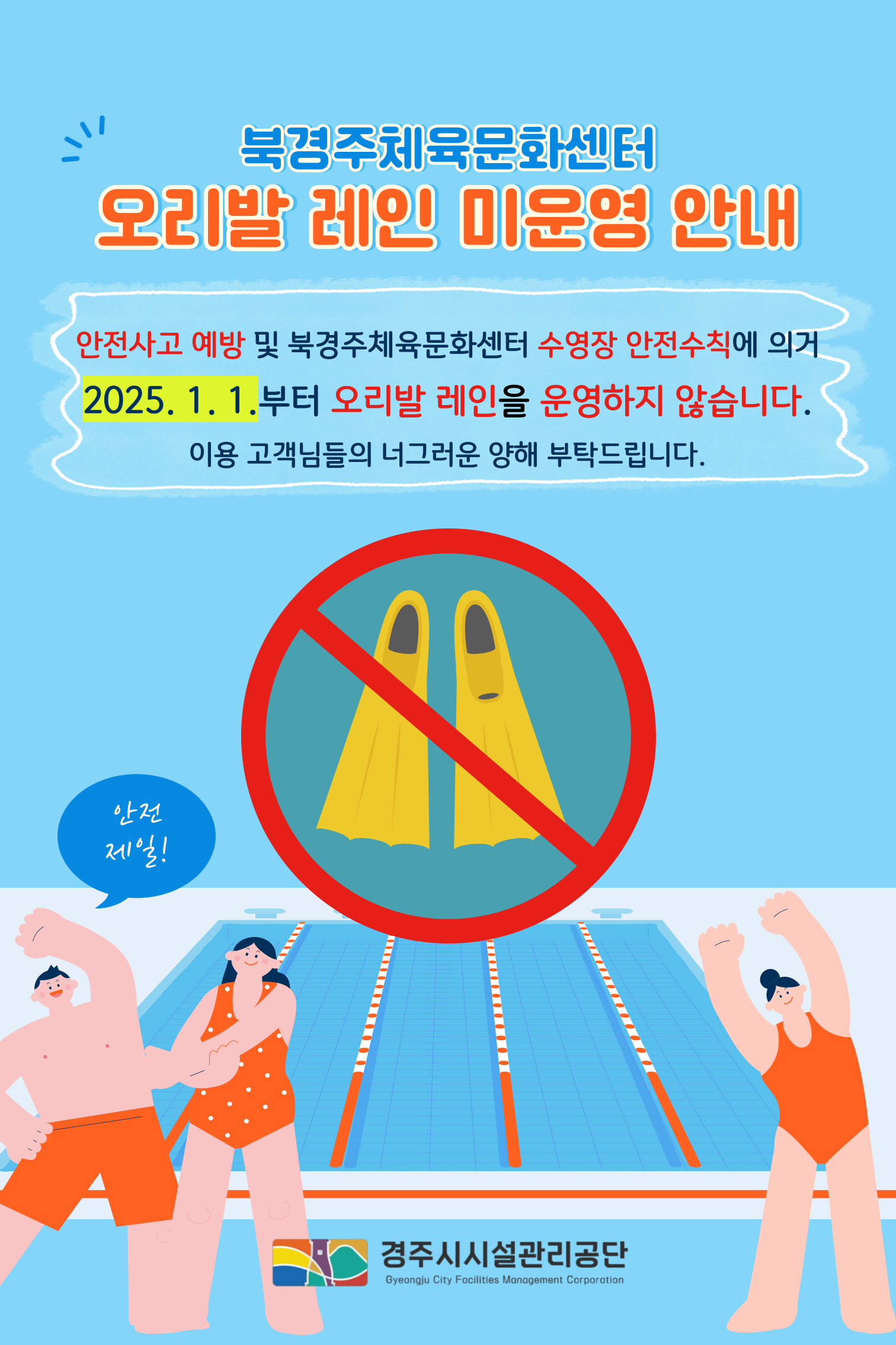 공지 북경주체육문화센터 오리발 이용 제한 안내 작성자 : 관리자 조회 : 587 등록일시 : 2024년 12월 2일 14시 44분 40초 오리발금지-세로형-001.png [ Size : 887.79KB, Down : 682 ] 미리보기 다운로드 목록보기
