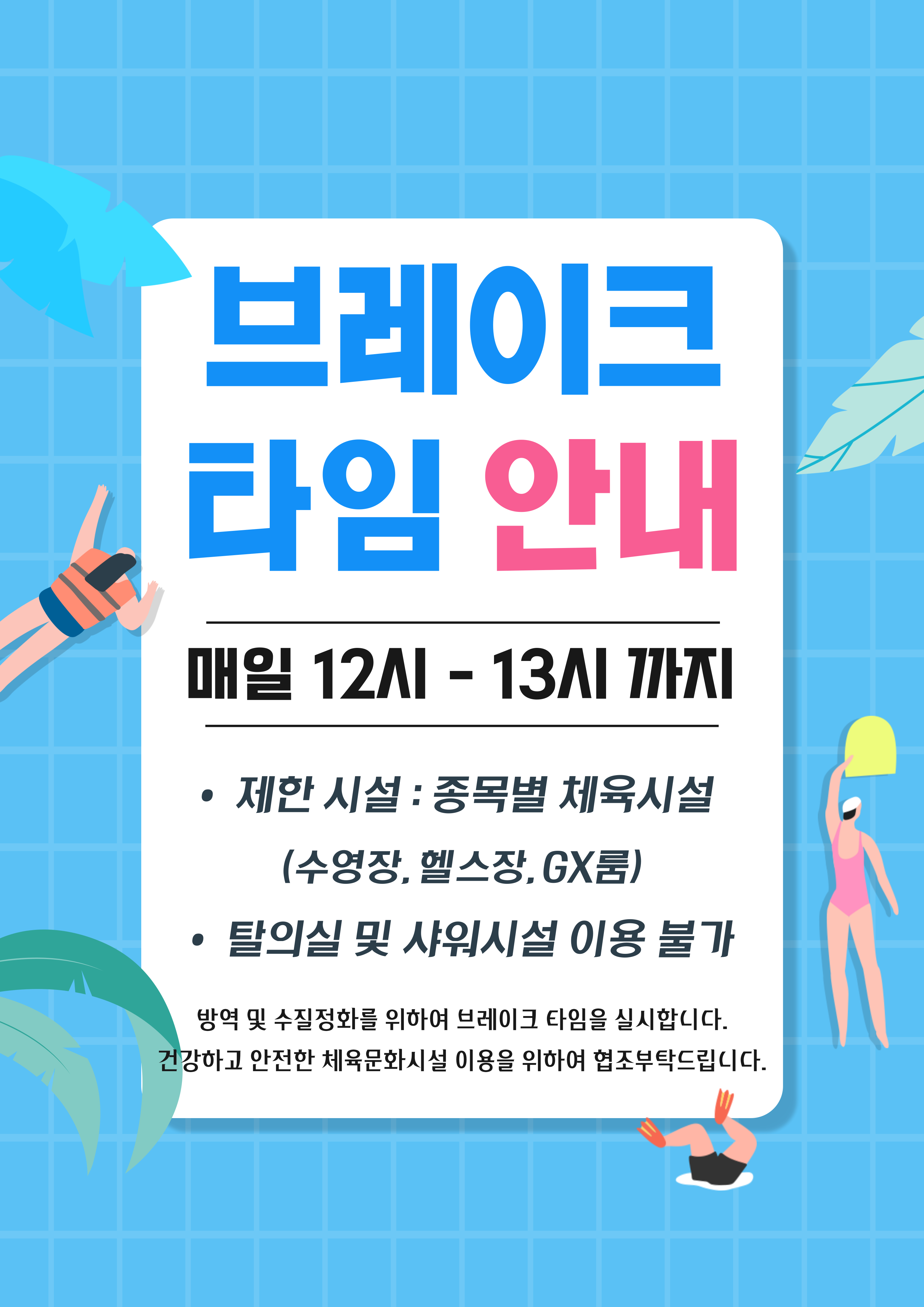 공지 수질개선 이용안전을 위한 "브레이크타임" 안내 작성자 : 관리자 조회 : 778 등록일시 : 2020년 12월 1일 11시 21분 24초 브레이크타임.png [ Size : 595.34KB, Down : 369 ] 미리보기 다운로드 목록보기
