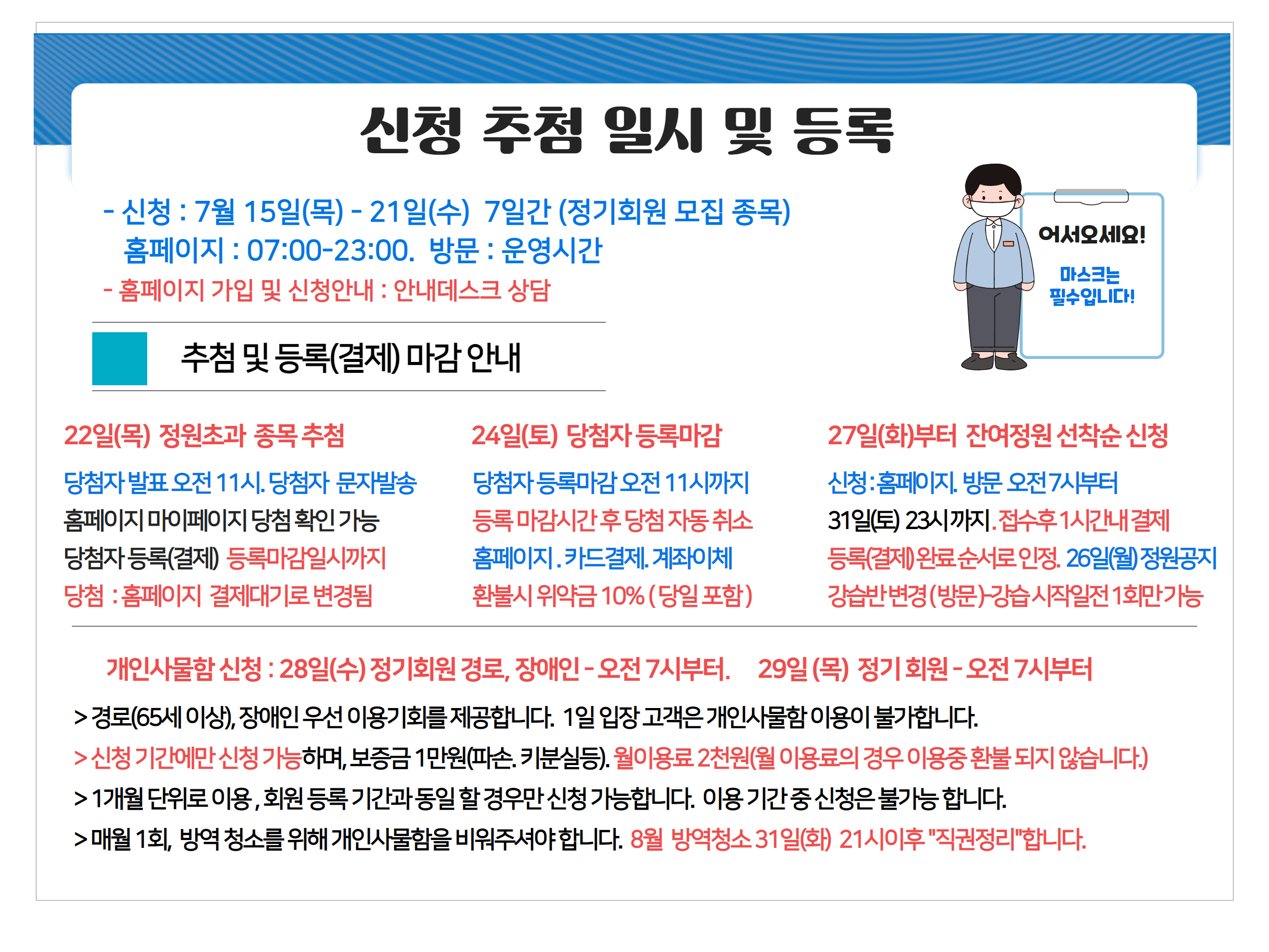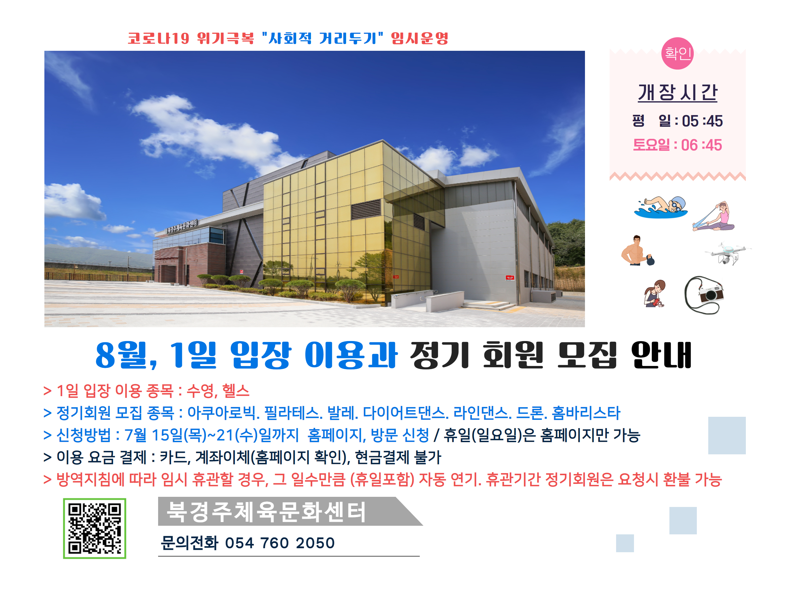 8월 정기회원 모집 안내 ( 수영. 헬스 1일 입장 이용 )