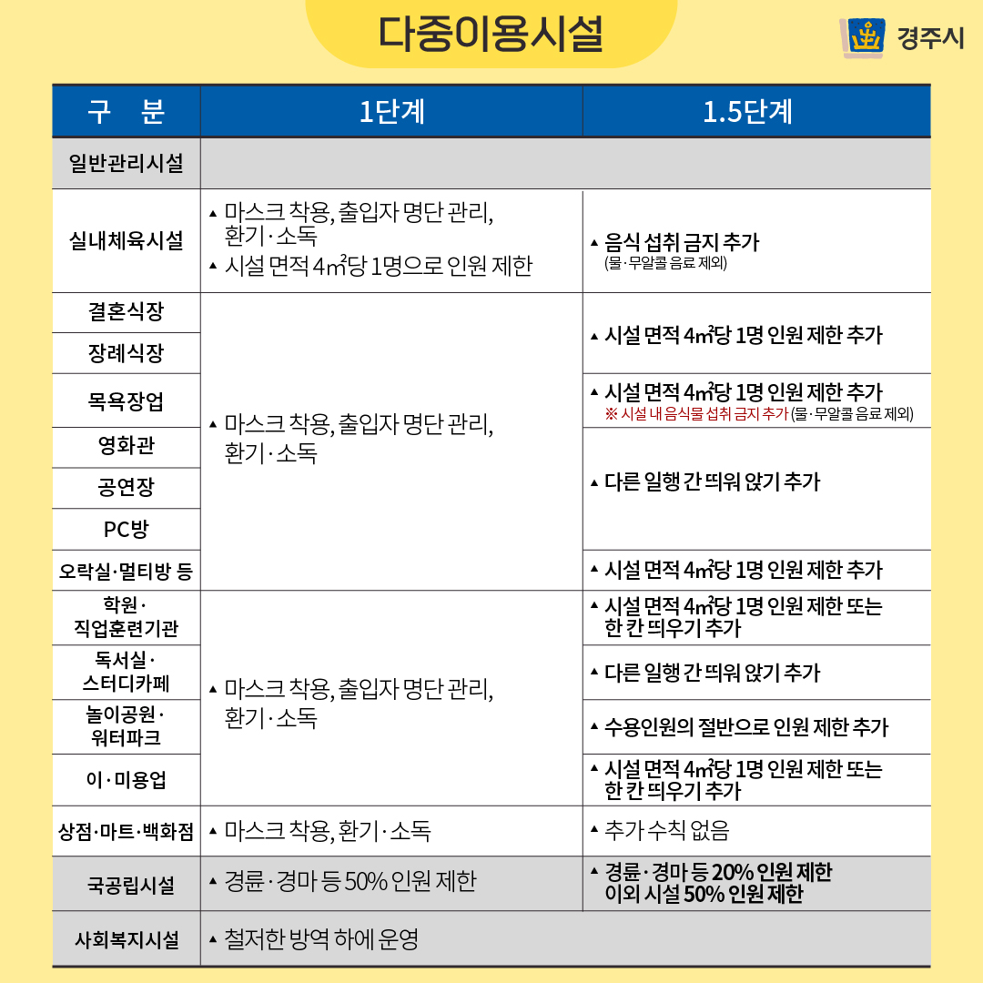 코로나19 확산 방지, 사회적 거리두기 1.5단계로 상향[12월1일부터] 작성자 : 관리자 조회 : 506 등록일시 : 2020년 12월 1일 11시 41분 57초 1.jpg [ Size : 111.12KB, Down : 390 ] 미리보기 다운로드 2.jpg [ Size : 242.81KB, Down : 408 ] 미리보기 다운로드 3.jpg [ Size : 302.87KB, Down : 386 ] 미리보기 다운로드 4.jpg [ Size : 289.08KB, Down : 355 ] 미리보기 다운로드 목록보기