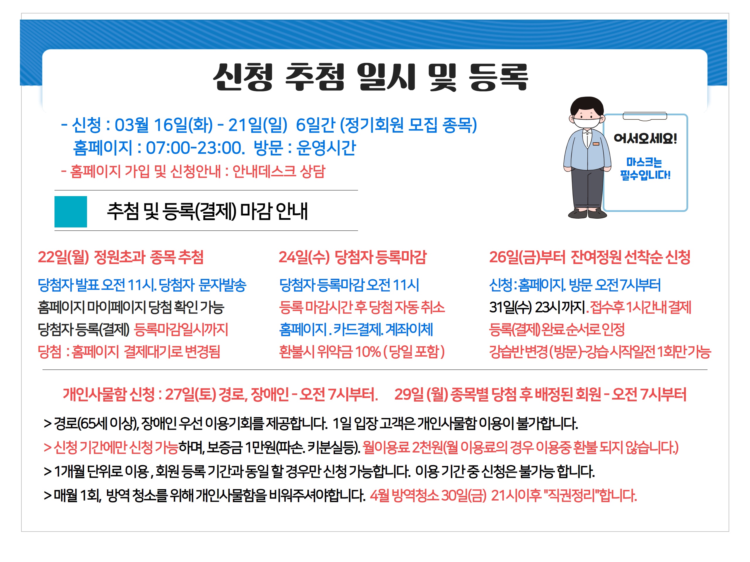 4월 정기회원 모집 안내 (수영. 헬스는 1일 입장 이용 )
